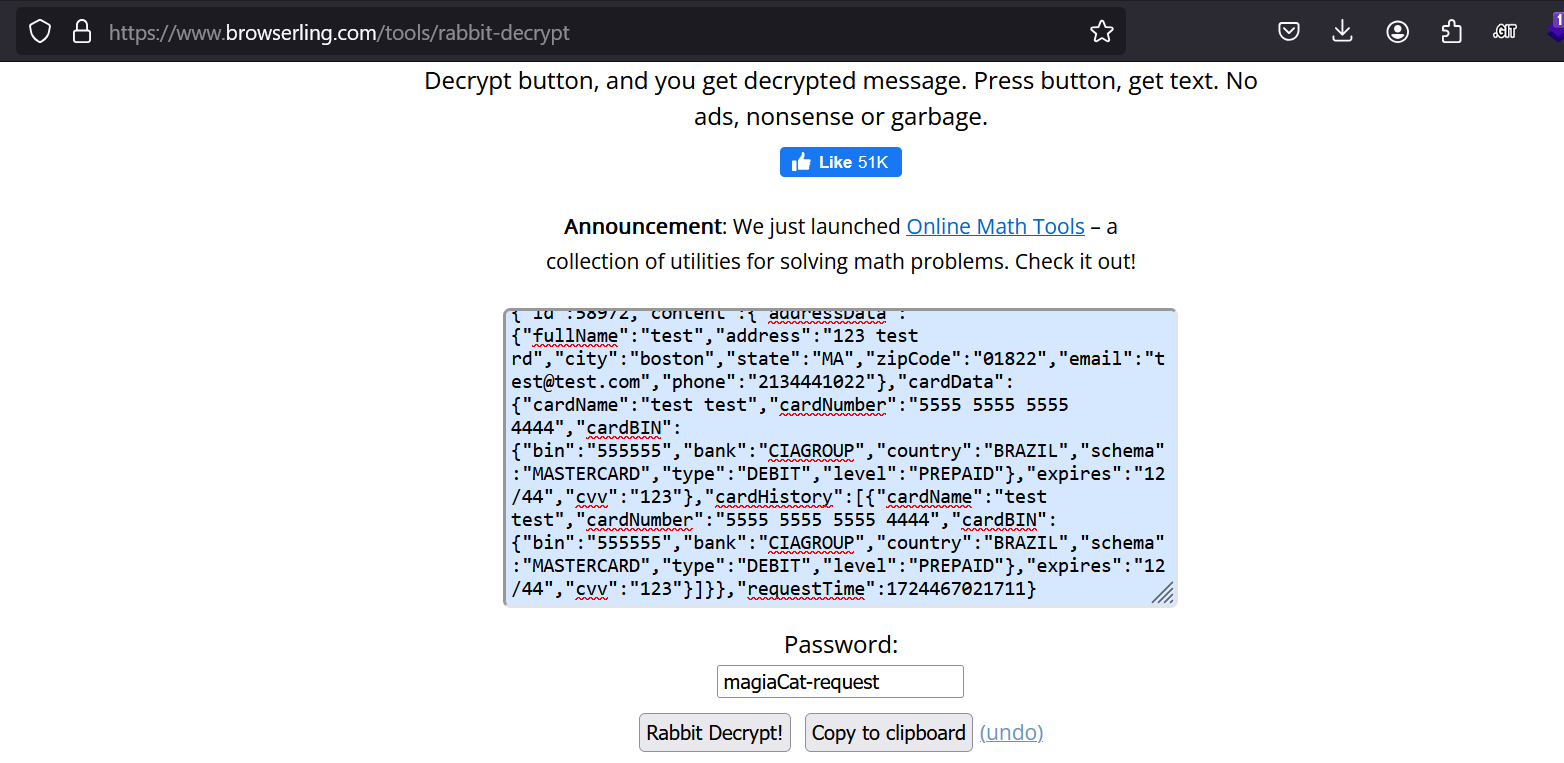 Something I also found interesting was the data submitted is stored in your local storage, encrypted with rabbit, but with the key `__my_store_key_darcula_is_666`.